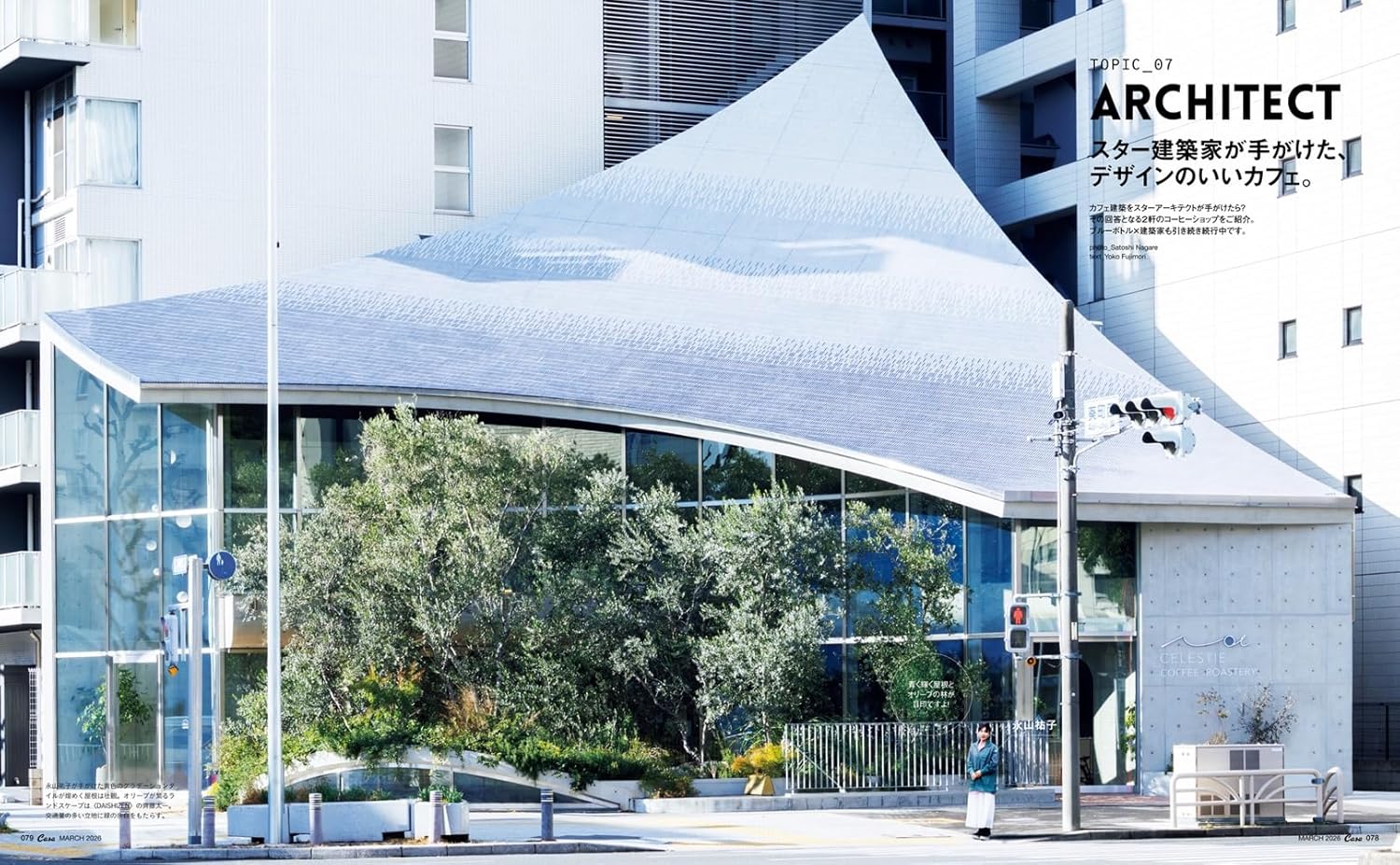 The issue introduces notable cafés and emerging trends, including shops promoting a so-called “fourth wave” of coffee culture, new stores opened by next-generation baristas, and international brands such as Fuglen expanding into Kyoto and Fukuoka. It also explores cafés integrated into offices and community hubs, as well as cafés designed by prominent architects.