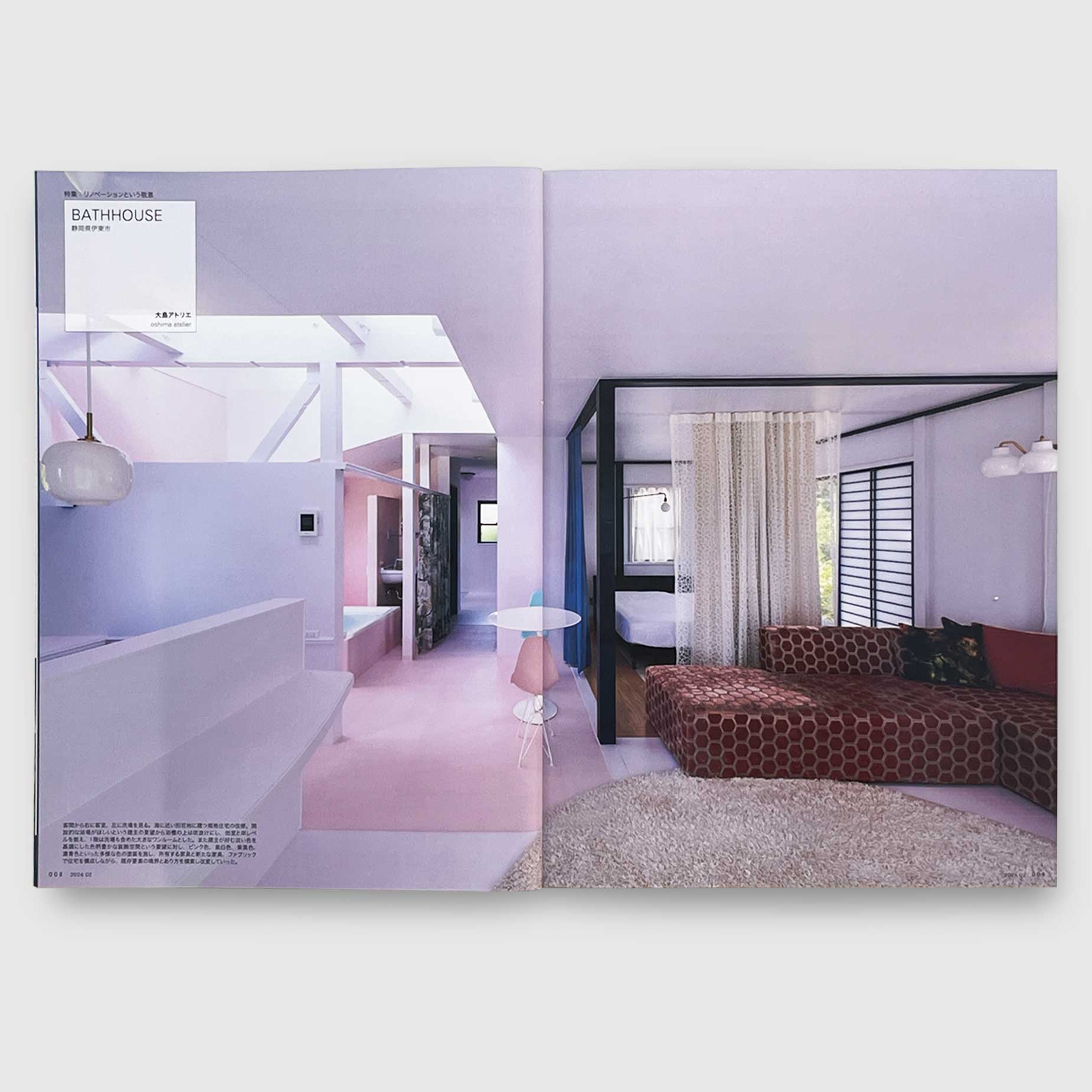 The issue brings together a diverse collection of renovation cases, including historically significant buildings redesigned with care and restraint, as well as modest houses transformed through thoughtful architectural interventions. Projects such as BATHHOUSE by Oshima Atelier, Maruhi House Renovation, and Mangetsuro illustrate how architectural respect can be expressed through continuity, reinterpretation, and dialogue with the existing fabric.